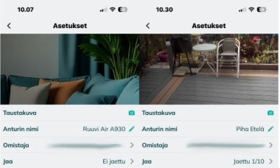 Ainoastaan RuuviAir asetuksissa jako ei näy, vaikka se näkyy jaetulla.